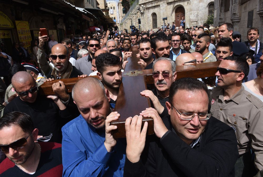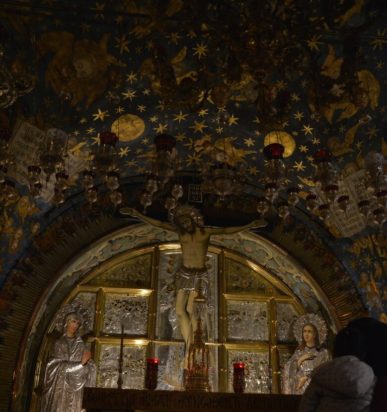 The Greek Orthodox altar of Golgotha recalls the moment of His death.