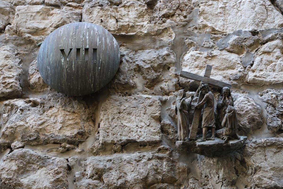 A Latin cross set in the wall recalls His words of compassion to the mourning women.
