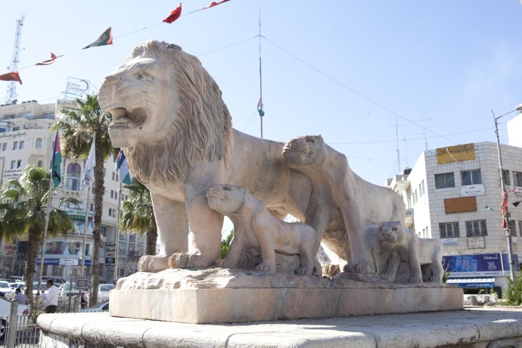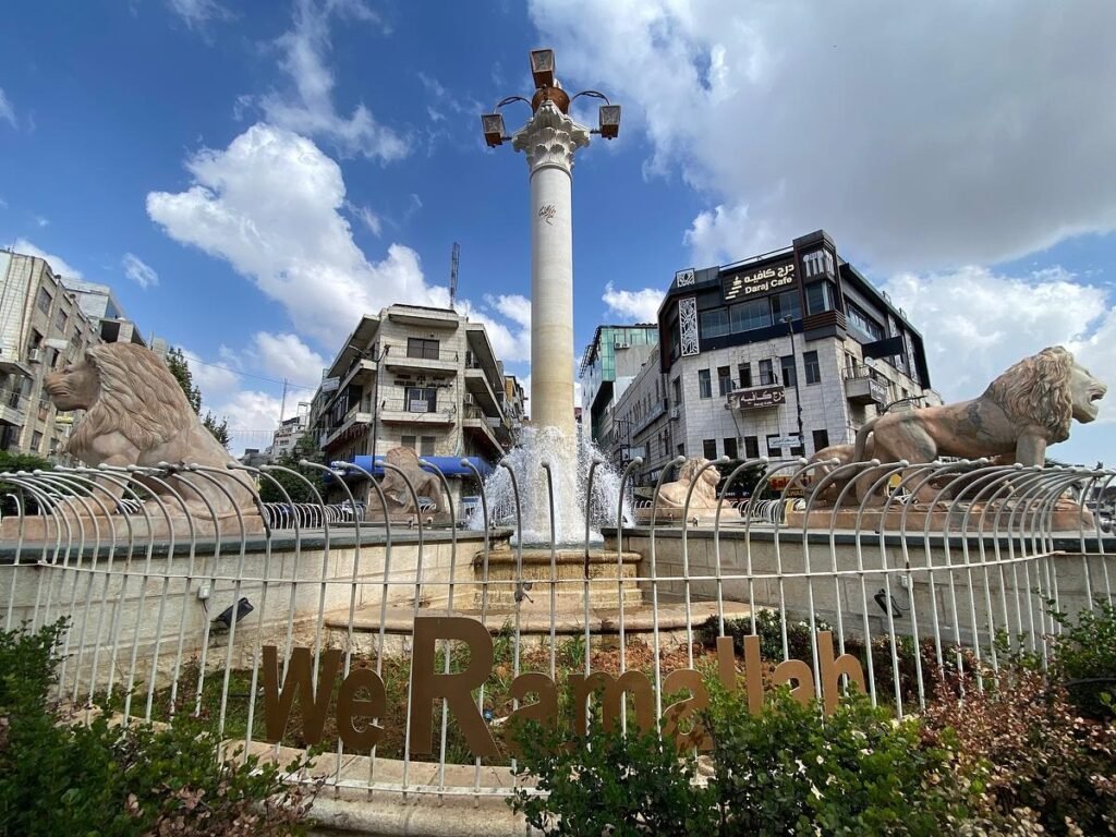 The lion statues, visible from every angle, have become a recognizable emblem of Ramallah’s character and pride.